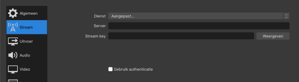 Zolang je niet aan de slag gaat met een livestream hoef je in dit scherm niets in te stellen
