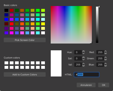 Er verschijnt een popup met een witte kleur vooringesteld maar waar je ook een andere kleur i kan stellen, kies de knop “Selecteer kleur”