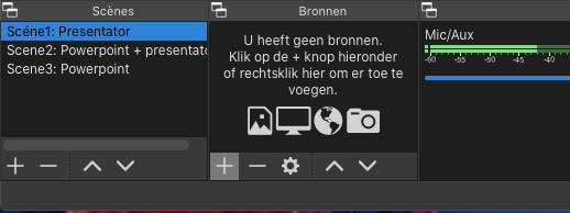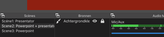 In dit onderdeel richten we OBS Studio in om een videopresentatie te geven waarbij er een powerpointpresentatie getoond wordt.
