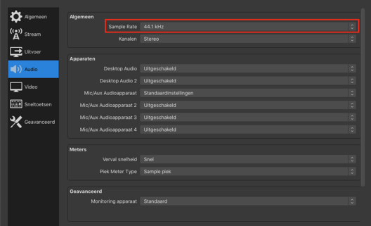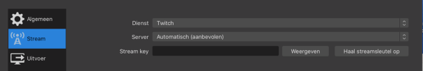 Indien gebruikt wordt van een andere tool dan OBS raden we aan de stream als volgt op te nemen: