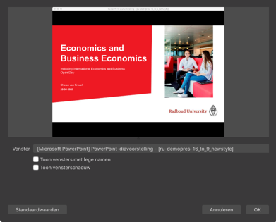 Ik kan geen Powerpoint scherm kiezen bij Venstercapture